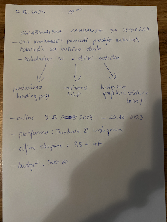 Roki letijo, brainstorming še ni končan, na mizi leži kup “sticky-jev” in hitrih zapiskov.